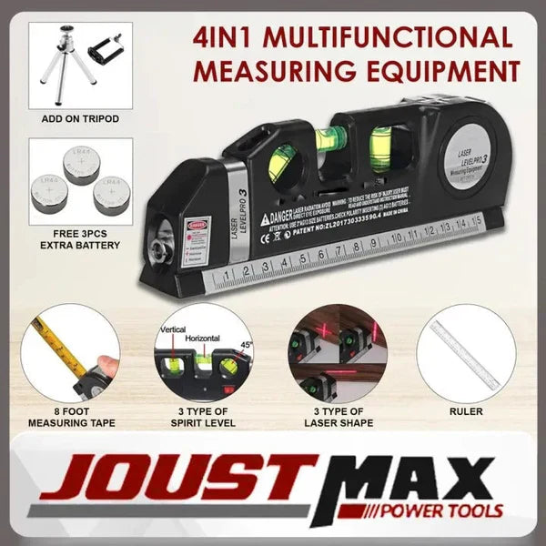 4 in 1 Fixit Laser Level Pro 3 4in1 Multi-Purpose Measuring Tool With 8 Feet Tape